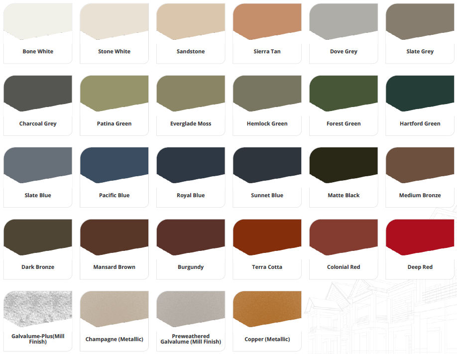 We offer a portfolio of metal roofing color options to fit your design. Our team will work with you to choose the best colors for your project.